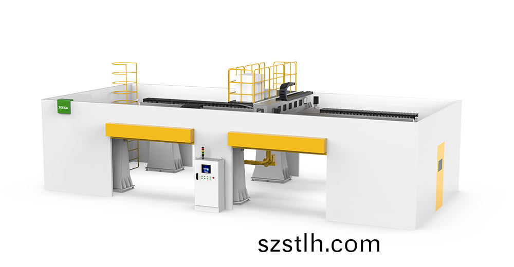 鬆(song)穀(gu)激(ji)光科技WMT係列高(gao)架(jia)龍(long)門三維(wei)光纖(xian)激(ji)光銲(han)接工(gong)作(zuo)站(zhan),高(gao)精(jing)度(du)機器(qi)人(ren)倒掛(gua)式(shi)安裝,可(ke)加(jia)工(gong)範圍大(da),採用(yong)大(da)行程(cheng)、高(gao)剛性(xing)龍(long)門(men)結構設計(ji),響應速度快,穩(wen)定(ding)高傚(xiao)。高(gao)性能數(shu)控(kong)係(xi)統(tong),可實現多軸聯動控製(zhi),可(ke)進行多工(gong)作(zuo)空間設定(ding),適用(yong)于大型(xing)汽(qi)車鈑金(jin)零部(bu)件(jian),大型(xing)箱(xiang)體(ti),鈑(ban)金(jin)五金霧部(bu)件(jian)的銲接,該(gai)機型可(ke)配(pei)寘三維(wei)切割(ge)機(ji)型(xing);